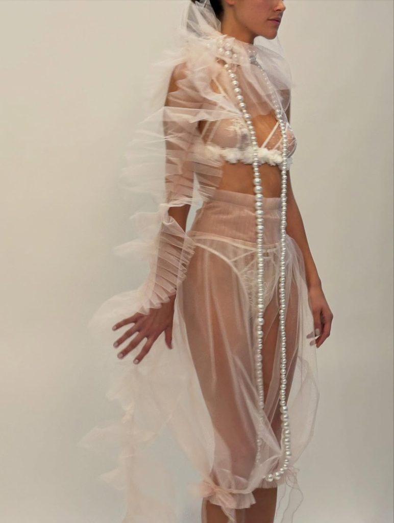 Elena Mottola es una fan incondicional de las siluetas femeninas e hipersensuales, así como de las telas y de los cortes que abrazan el cuerpo sin asfixiarlo. Una visión que ella misma ha puesto en escena. Entre sus trabajos destacan una colaboración con Weekday hace un año y un editorial titulado Reel & Intimate para Hube. Una diseñadora que nos inspira por su enfoque sensible del cuerpo y por sus looks elegantes y a la vez desenfadados.