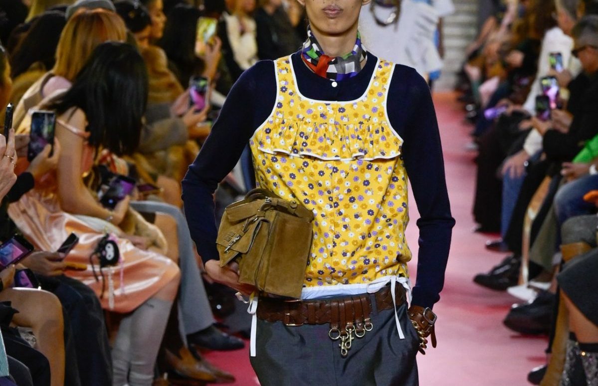 Miu Miu ha abierto el desfile de su colección primavera-verano 2026 con la actriz Sandra Hüller que, con un paso bien afirmado, lucía un look sutilmente disonante. Sobre las múltiples capas de ropa (una camisa, un jersey y una chaqueta oversize), aparecía un delantal azul con bolsillos laterales, último bastión de un vestuario práctico con un claro estilo marinero.