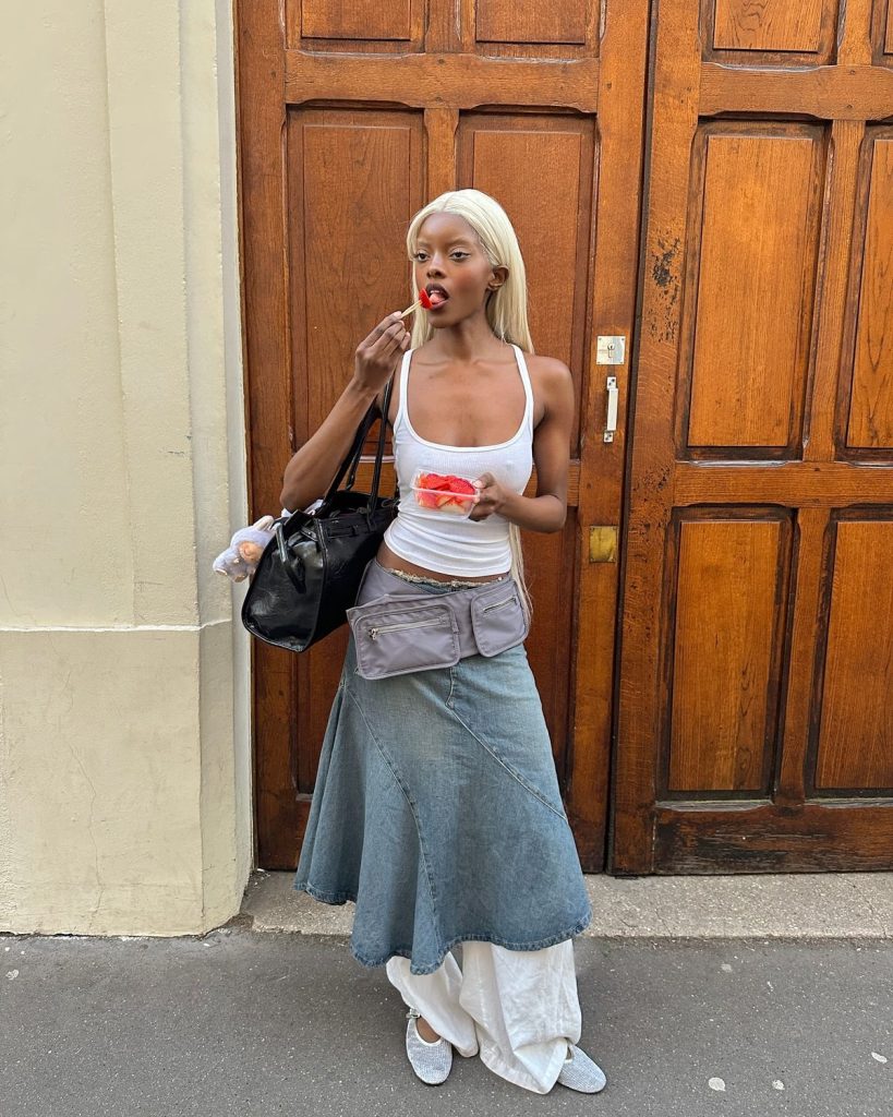 Presente tanto en las colecciones femeninas como masculinas, el accesorio atrae sobre todo a las mujeres. En las redes sociales, el bolso llevado a la cintura seduce por su capacidad para realzar las caderas, y es ideal para llevarlo con prendas de tiro bajo como faldas rectas, Capri pants o pantalones baggy. Versátil, se integra tanto en looks de inspiración bohemia como en conjuntos más streetwear, confirmando su capacidad para adaptarse a diferentes estilos.