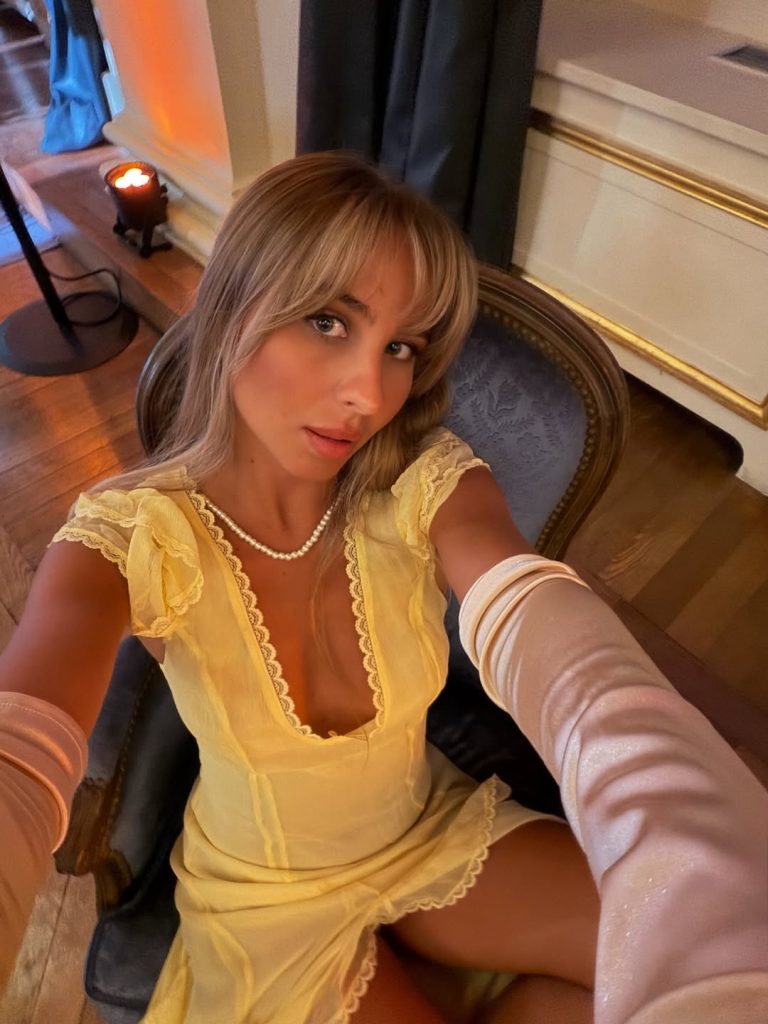 Sin embargo, las expectativas no se centraban tanto en una reconstitución histórica perfecta sino en la reinterpretación contemporánea de determinados códigos estéticos. Como hizo @louisergt, una de las invitadas más comentadas del evento, algunas asistentes recurrieron a marcas como Oh Polly para evocar, de manera sutil, el espíritu de la serie: vestidos con corsé que realzan la silueta, hombros descubiertos y tonalidades pastel que remiten al imaginario de la aristocracia inglesa retratada en la serie.